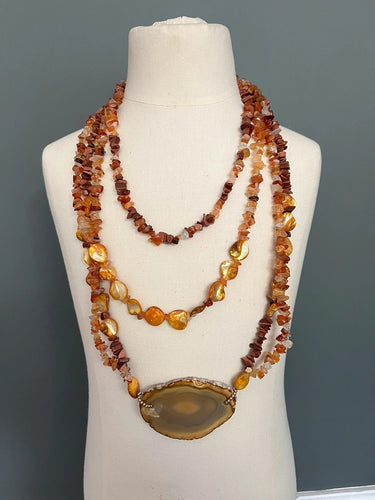 Vintage Y2K Pam Miran for Anthropologie Gold & Blue Glass Statement Necklace