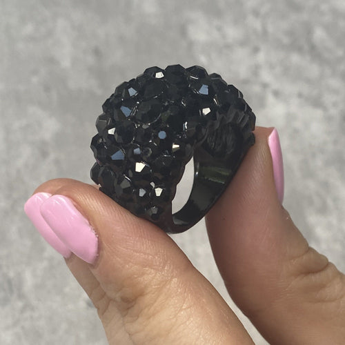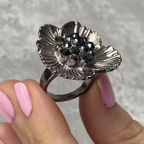 Vintage Silver Colour & Black Stone Cocktail Ring