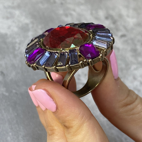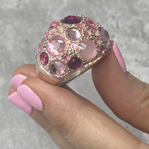 Vintage Silver Colour Oversize Pink Faux Diamond Cocktail Ring