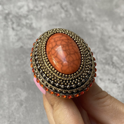 Vintage Oversize Coral Orange & Gold Cocktail Ring