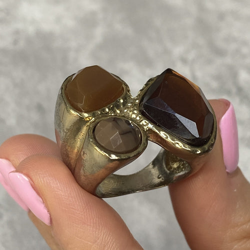 Vintage Gold Colour & Brown Stone Cocktail Ring