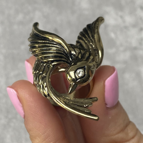 Vintage Oversize Bird & Faux Diamond Cocktail Ring
