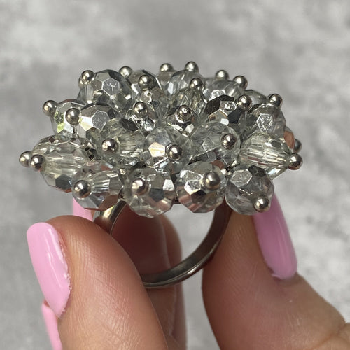 Vintage Silver Colour & Faux Crystal Diamond Cocktail Ring